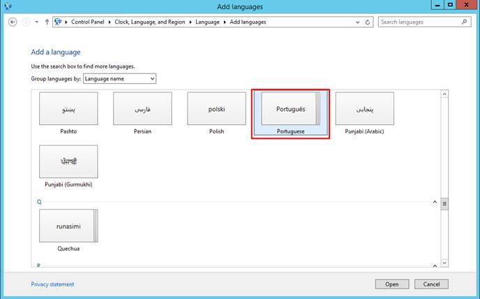 - Find and click the requested language, for example, Portuguese