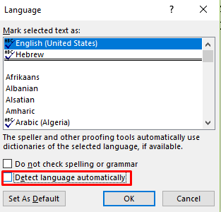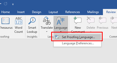 3. Click Set Proofing Language
