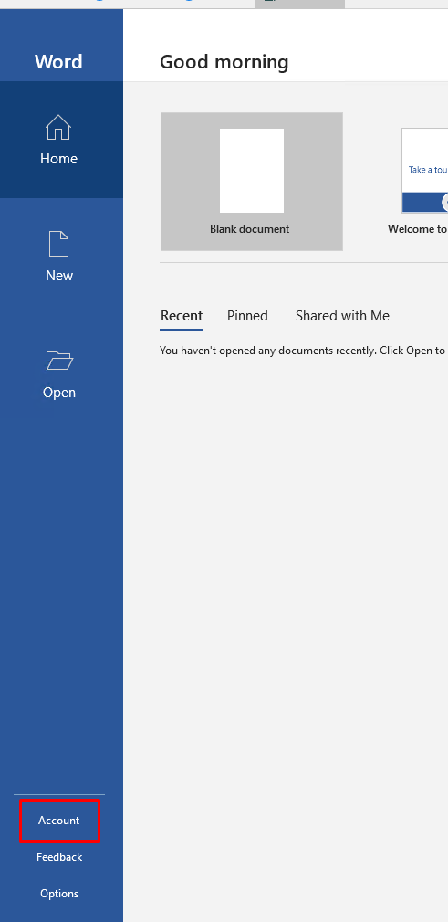 1. Open one of the Office programs ( Word for example )