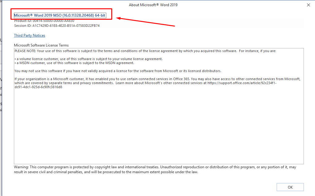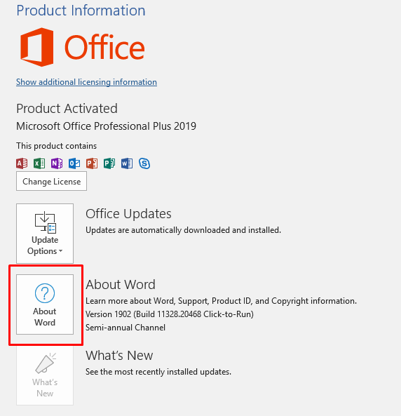 3. Click on About Word