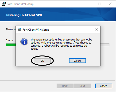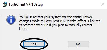 8. המחשב יכבה וידלק מחדש, לאחר שעלה בשלמותו יש לפתוח את אפליקציית הFortiClient VPN, לסמן את התיבה בוי (V) וללחוץ על I accept